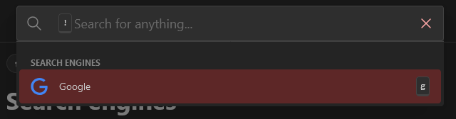 Prefix that is used to choose the search engine in the popover using the keyboard.